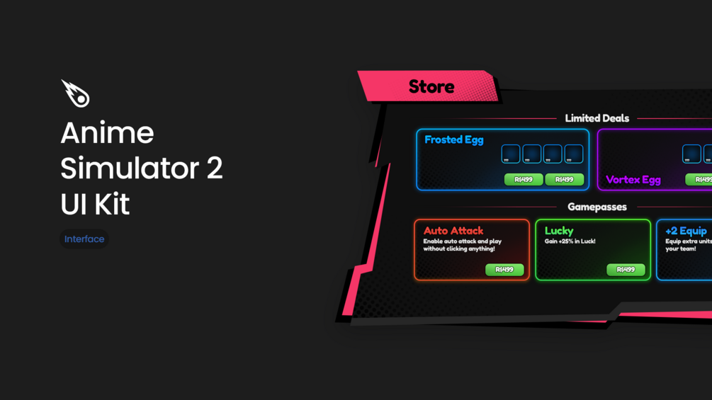 Upgrade your game's UI and captivate your audience with the Anime Simulator UI Kit 2. Whether you're creating a new game or revamping an existing one, this kit is the perfect addition to make your Roblox game stand out in the crowded gaming market.
