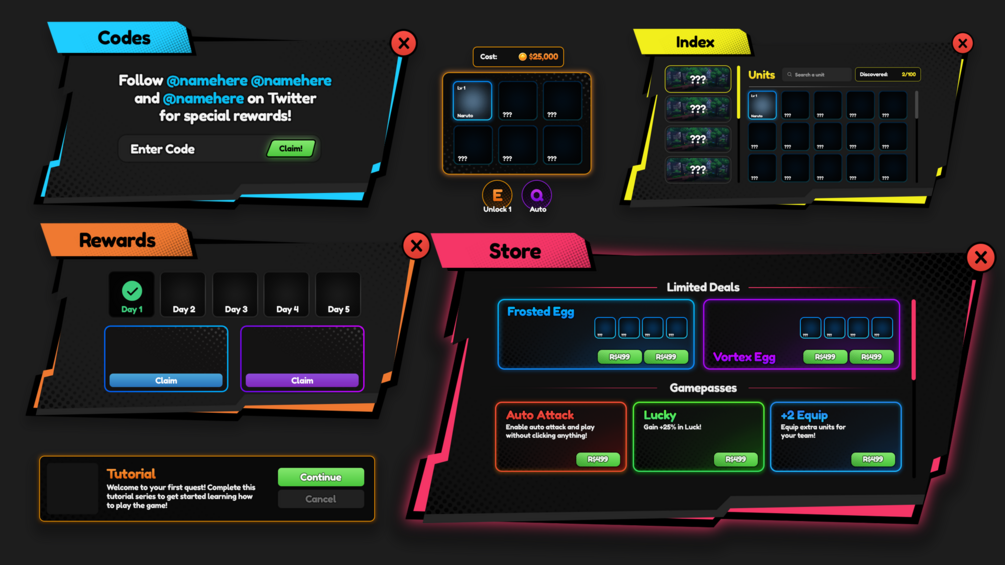 The Anime Simulator UI Kit 2 is designed beautifully, and comes with ~11 fully imported frames, along with the PSD file.