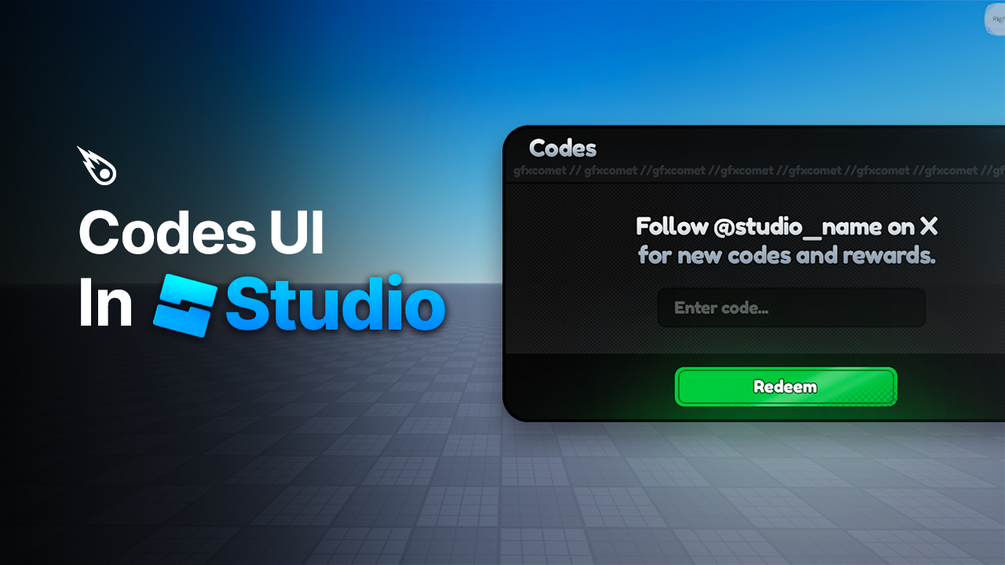In this tutorial, you'll learn how to design a codes ui from scratch, import and build it inside of Roblox Studio so that it is game-ready to be programmed and used for your game project.