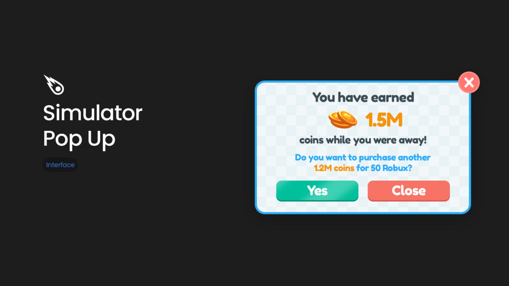 Simulator Popup UI for Roblox Studio + Photoshop File