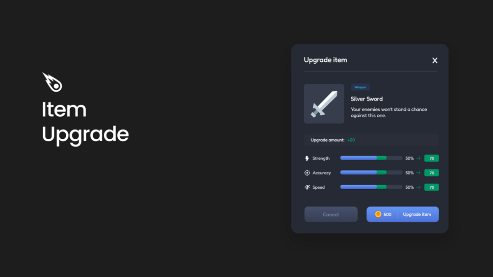 This Item Upgrade interface allows players to select and upgrade stats of an item!
